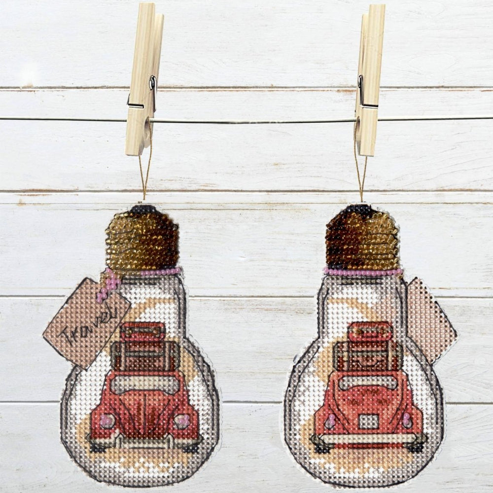 O kit de ponto cruz contado "Série de viagem" RED CAR contém: