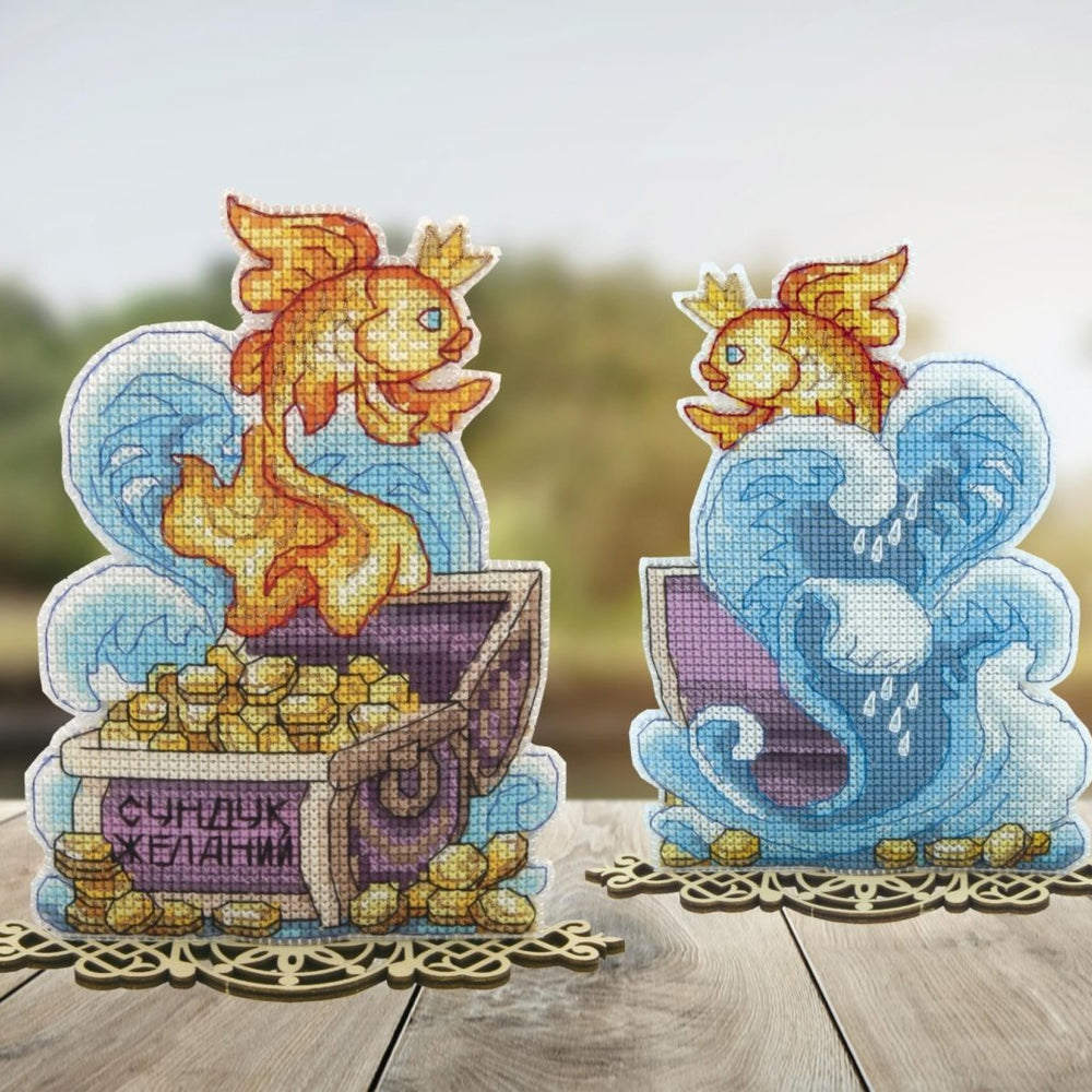 GOLDFISH "Amulets", Kit Ponto Cruz Contado, lona plástica 14 contagens, tamanho 12,5 x 14 cm, CRYSTAL ART (T-67)
