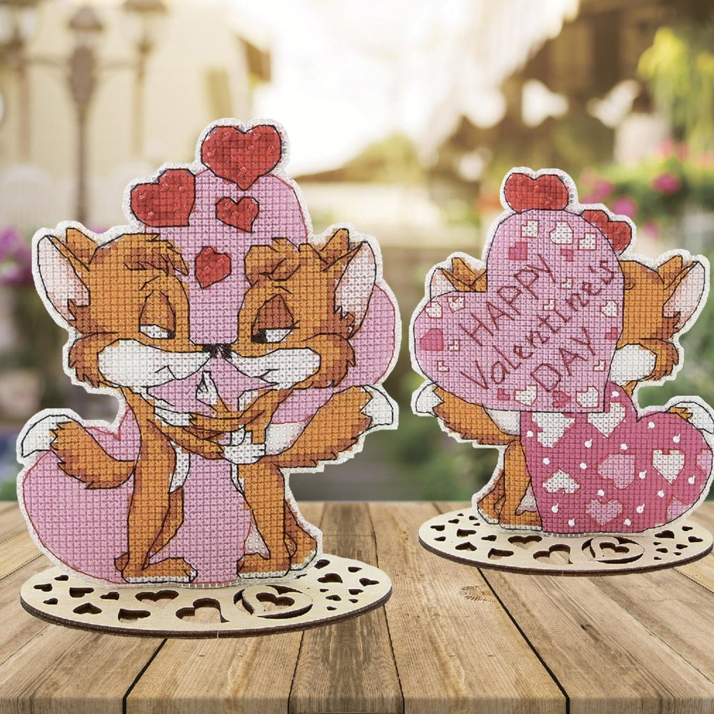 FOXES "Presente do Dia dos Namorados", Kit Ponto Cruz Contado, lona plástica 14 contagens, tamanho 10,5 x 13 cm, CRYSTAL ART (T-60)